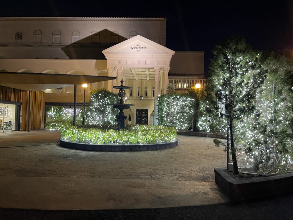 夜にチェックインしましたが、イルミネーションがとても綺麗でキラキラしていました!6月に宿泊したので、年中イルミネーションが付いているようです!