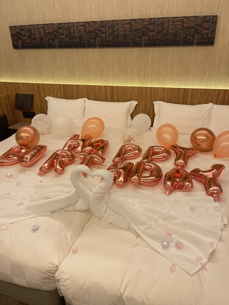 お誕生日旅行でしたので、オプションで飾り付けをしてもらいました♪
