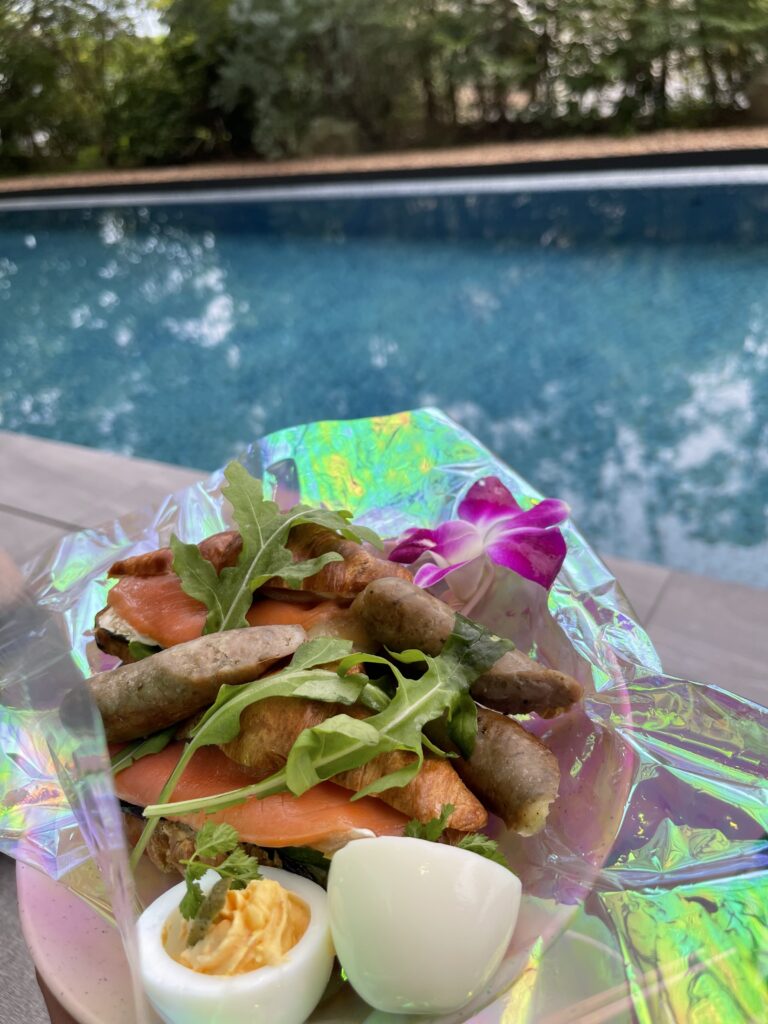 ぜっちゃん夫婦はリゾート気分を味わえるプールサイドでのピクニックスタイルの朝食にしました!
