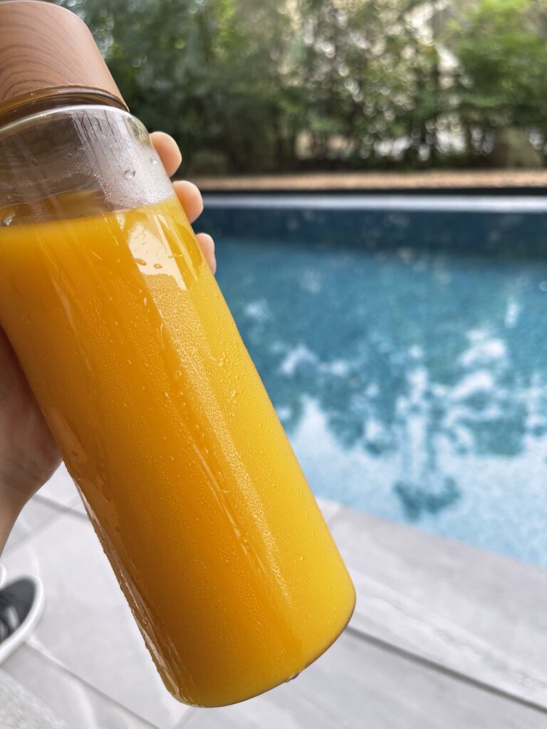 マンゴージュースにしましたが、予想以上にボトルが大きかったので、スタッフの方にOKをもらい、室内で飲むことにしました♪