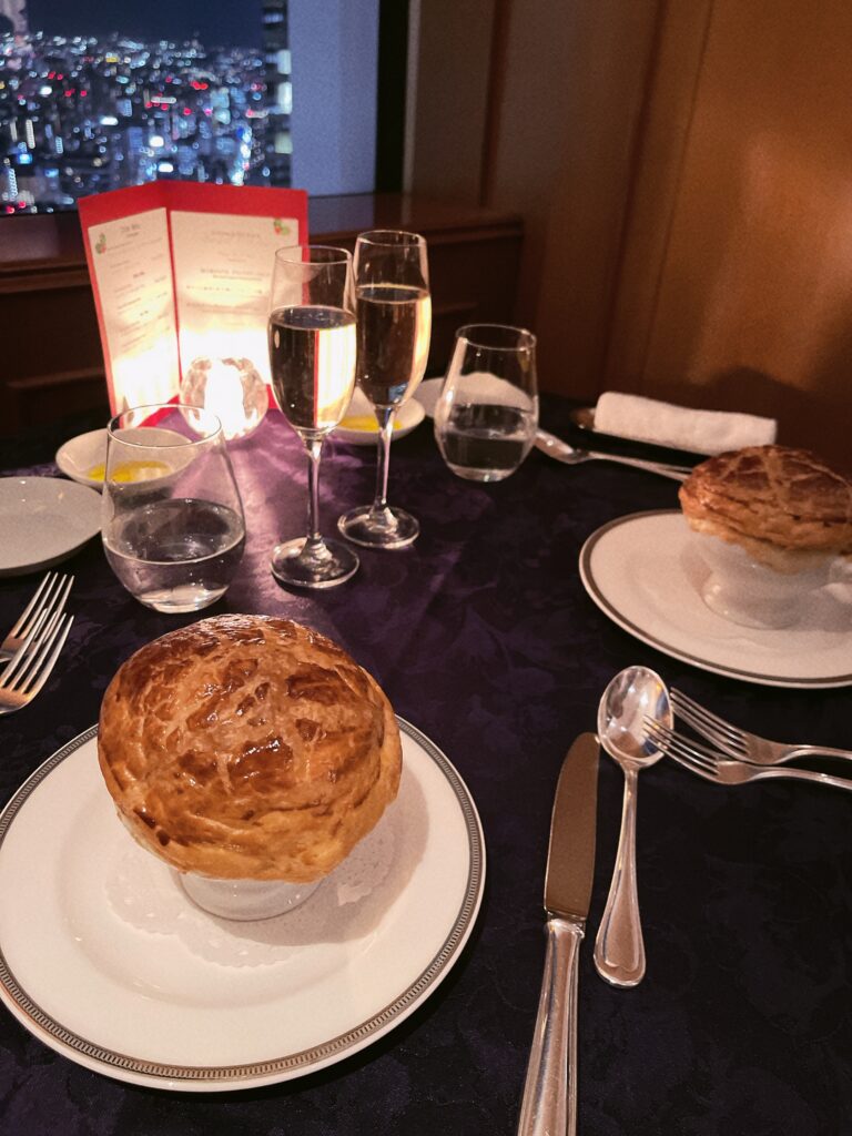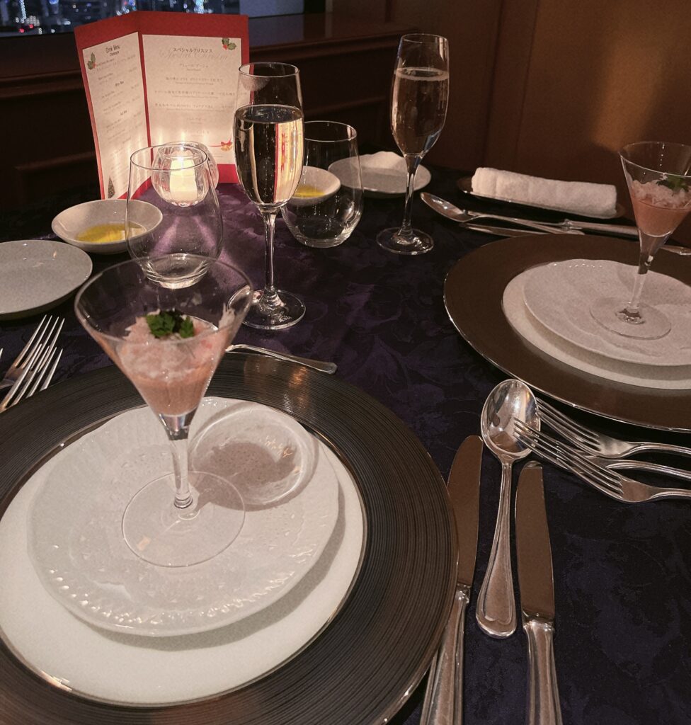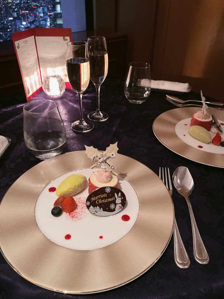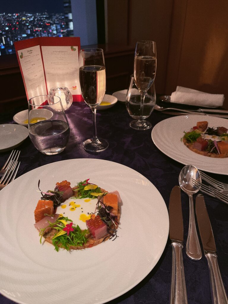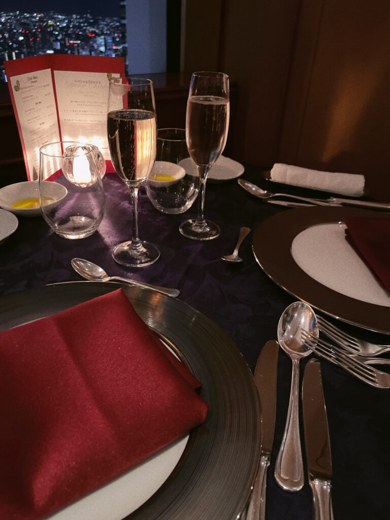 夜は最上階の52階にあるスカイラウンジ「ジーニス」でクリスマスディナーを楽しみました!